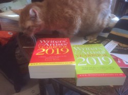 …about getting something done with my writing these were delivered today: the WRITERS & ARTISTS YEARBOOK and the CHILDREN’S WRITERS & ARTISTS YEARBOOK. I wouldn’t have known the latter existed if Lindy hadn’t told me so thanks to her again. In the background is Monty who does not yet know of my plans to immortalise him as Master Tobias Crumhallow.