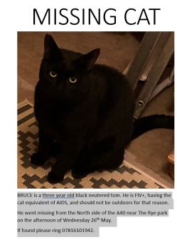 So his name and photo is on websites and on a notice (see illustration) outside my flat. Let me know if you see a black cat in the vicinity of High Wycombe let me know.